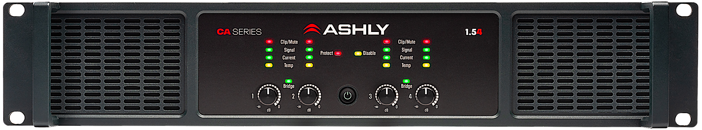 The CA-1.54 Class D Power Amplifier is capable of driving up to 1,500W at 2 or 4 Ohms or 70V per channel, and 750W at 8 Ohms per channel. In Bridge Mode, it can deliver 3,000W at 100V or 8 Ohms, providing exceptional power for demanding audio applications.
