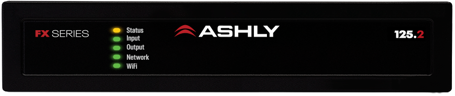The FX125.2 Compact Class D Power Amplifier is a 2-channel configuration of Class D design housed in a 1/2 RU metal chassis with a metal front. The front panel is equipped with multi-color LED indicators for Status, Input, Output, Network & WiFi.